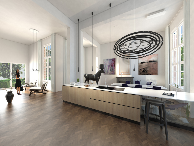 These later additions will be removed and the building will be redeveloped with 6 luxury vertically linked villas (350-400 m2). The villas will extend over four to five floors, from basement to attic. Potential buyers are able to choose their own customized interior. All homes also have a private outdoor space, besides the joint use of the large monumental garden.