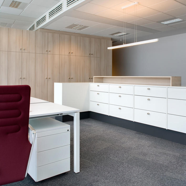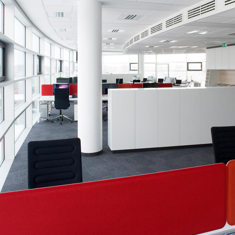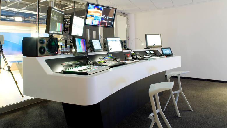 Die planerische Herausforderung: räumliche und akustische Trennung von Bereichen trotz Aufrechterhaltung der wichtigen Sichtbezüge. Durch den Einsatz akustisch wirksamer Materialien für die Büromöbel und die Trennwände, durch eine Höhenstaffelung der Möbel und durch eine spezifische Anordnung der Arbeitsplätze wurde der Großraum zoniert. Die optisch sehr hell und neutral gehaltenen Räume schaffen Ruhe und wirken somit dem hektischen Treiben in der Redaktion entgegen. Und so läuft die Sendung das ganze Jahr über, täglich um 17.30 Uhr.