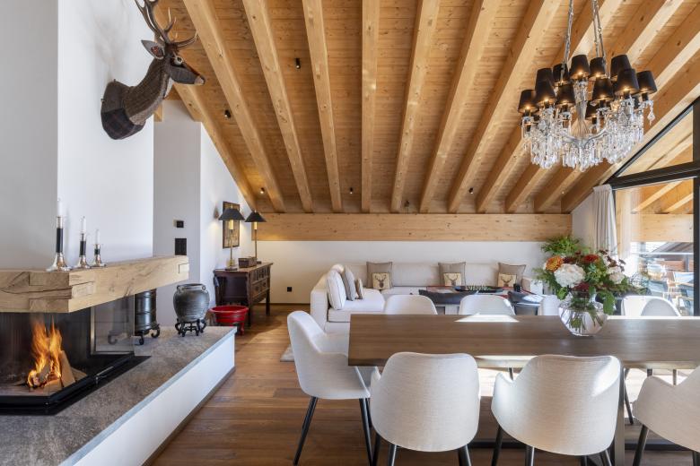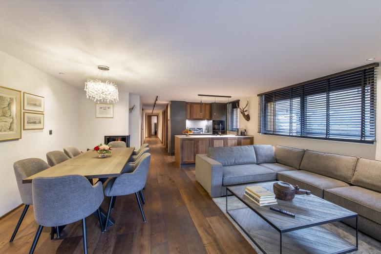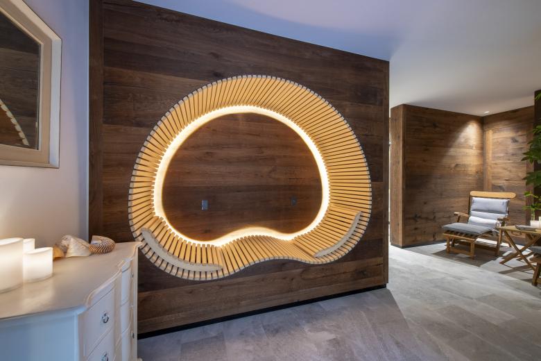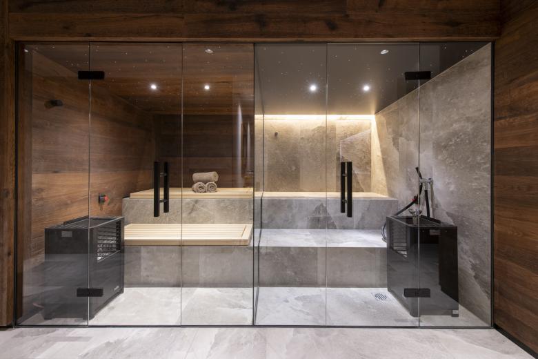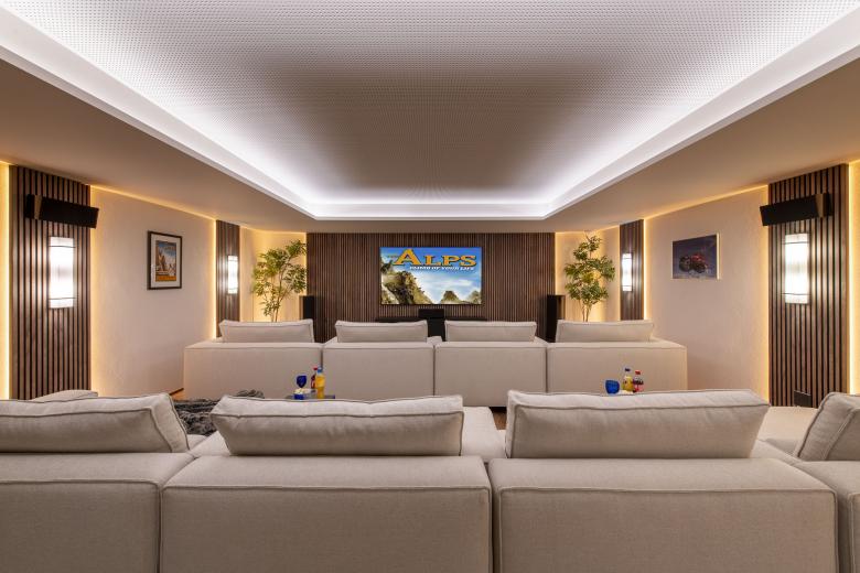 Die Grundrisse bieten grosse, offene Wohn- und Essbereiche mit Holzfeuerkaminen, grosszügige Balkone nach Süden sowie Schlafzimmer mit direkt zugänglichen Badezimmern. In den unteren Geschossen des Gebäudes finden sich, neben den technischen Räumlichkeiten, Gemeinschaftsräume wie ein Wellnessbereich mit Lichthof, ein Fitnessraum, ein Kinosaal und ein Weinkeller/Seminarraum.