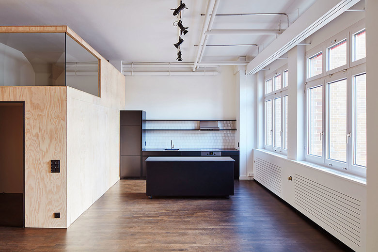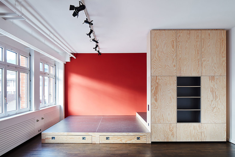 Konzept, Raumgestaltung und Planung für Büroumbau mit neuem Küchenbereich und Nasszellen. Bauleitung und gestalterische Leitung.