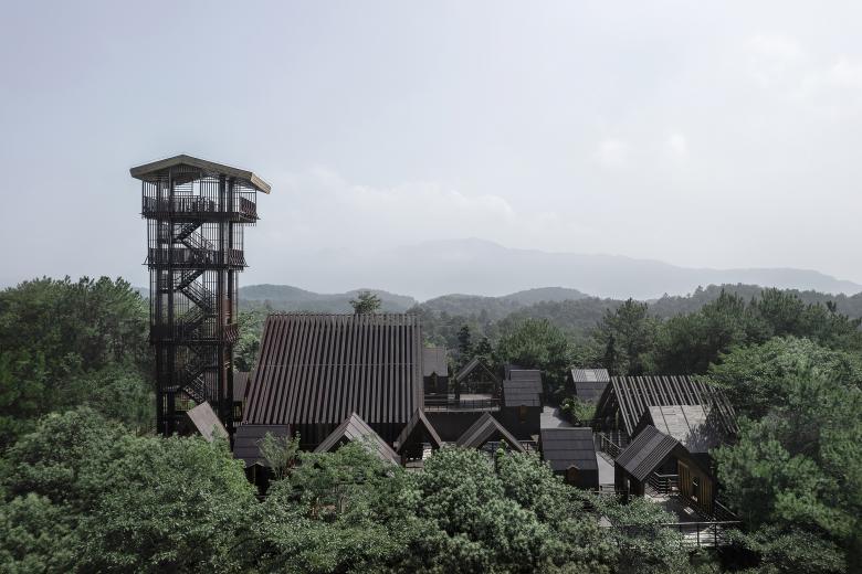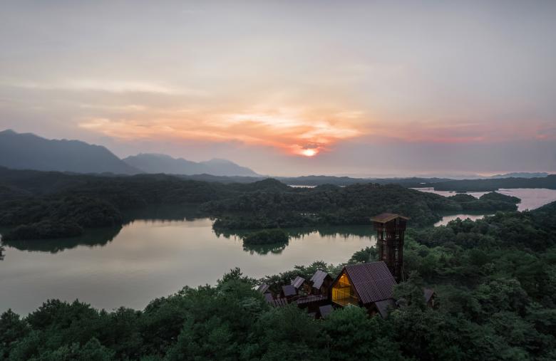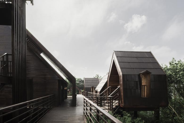 木屋小镇位于江西九江西南部庐山西海的一座岛屿上,由上海平介建筑设计事务所设