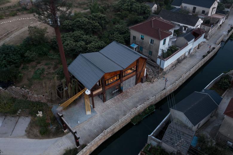 项目位于苏州太湖西山岛后埠古村落入口,推开二楼的窗,就能看到穿过古村的小河,后埠村现为中国传统村落,苏州市控制保护古村落。村落形成于南宋,古称梅梁里,明代后因禹期山前的湖湾设石码头(地名前湾),山后设停泊船只的船埠,更名为后埠。未经商业开发的古村经修缮保护后,也最大程度保存了自然和生活的气息。驿站的落成成为苏州近郊,让人停下脚步喘息的珍贵场所。因此本案设计希望在古村落的入口处,打造一个可以连接古今的驿站咖啡馆,让游客休憩的同时,领略历史村落的魅力,也让曾经无人问津的古村焕发生机。