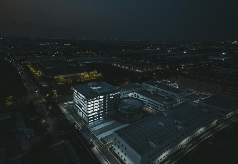 设计在建筑外表面采用了大量的玻璃幕墙,主楼部分公共区域与研发区域在外立面通过不同的材质加以区分,而副楼则全部采用玻璃幕墙使得公共景观区域更加开阔,提升了建筑的自然属性,其既诠释了“方圆调和”,又使得整个建筑显得轻盈而现代。这是一种新型的办公建筑——既简单、高效,又具有标志性。