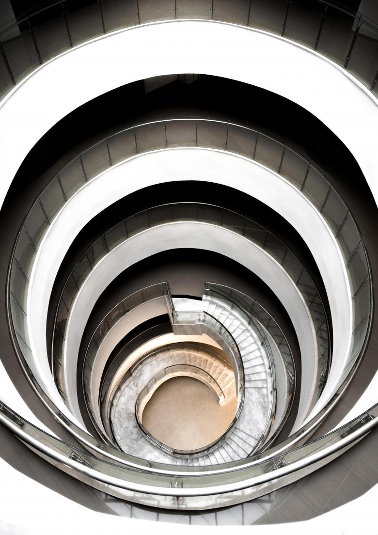 而建筑内部空间的营造,建筑师在立方体中间由小至大挖去一个圆台,不仅提高了建筑内部的自然光采光,产生了一个有趣的中庭,提供了一个高品质办公环境;而且在灵活的框架内,创建了一系列的社交空间,以鼓励非正式会议、合作和终极创新。