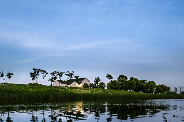在长三角一体化的大背景下, 苏州各区新城的生活也随产业布局被分割成不同的区域,而太湖新城作为最新的开发区域,多元文化与基础设施的升级必然是区域的发展趋势。苏州湾体育公园位于太湖新城的核心-东太湖生态旅游度假区内, 公园内有花海、步道、池塘、球场,树木繁茂, 是旅游度假、户外休闲、运动健身的好去处。体育公园位置优越,西临太湖, 北侧高架连接苏州市区及上海,南接浙江,不仅为周边居民提供舒适的交流场所,更吸引了诸多周边城市来客。 项目坐落于体育公园中, 临近公园网球场和篮球场,绿荫环绕,作为公园的休闲配套为周边服务。