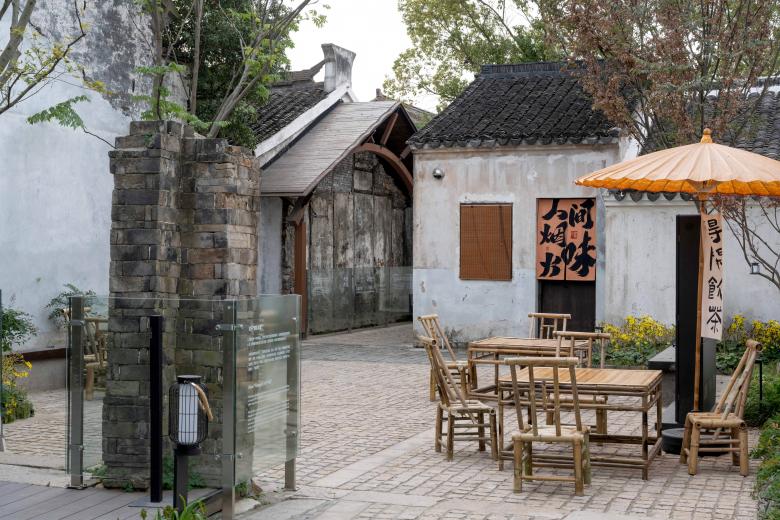 是家小院位于常州焦溪古镇的核心区,原为一处三进民居,由于大部分建筑已坍塌、损毁,现场仅保留一个主体建筑以及残留的黄石半墙。对历史建筑的保护、修缮、活化和利用,是对抗时间和失忆最有效的一种方式。在我们介入前,东南大学建筑设计研究院已对遗留建筑进行了修缮。本案设计希望将小院打造为一个可以连接古今的小酒馆,让一度成为废墟的小院重新焕发生机。在飘着酒香的小巷里逛一逛这里的老房子,走一走康熙年间保留至今的石板路,午后坐在黄石半墙的小院子里欣赏秋色,围炉煮茶,将会成为人们体验这座水乡古镇的极佳方式。