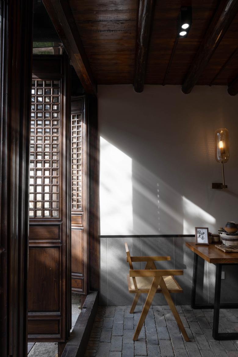 室内空间完整保留了原始建筑的结构、门窗及铺地。