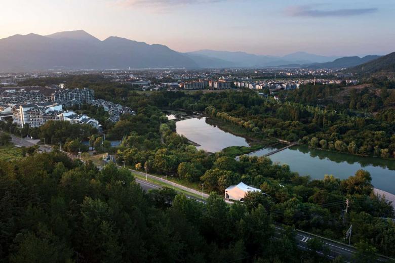 In Baita Town, Xianju County, Taizhou City, Zhejiang Province, nestled within an open river valley along the north bank of a tributary of the Yong'an River, we have created "River Valley Coffee"—a space designed for profound dialogue with nature. The site faces the continuous mountain outlines of the Shenxianju National Park to the east, is bordered by dense bamboo forests to the west, and overlooks a meandering stream to the south, boasting exceptional ecological and scenic resources. Characterized by a typical subtropical monsoon river valley climate, the area experiences distinct seasons: summer winds weaving through bamboo groves and winter migratory birds sweeping across the sky. This dynamic natural environment imbues the project with a ever-changing context and echoes our firm belief: Dwelling Perspective.As Cambridge University social anthropologist Tim Ingold aptly stated,"We do not view place as a static object but rather inhabit it, flowing and becoming with it."Each of us journeys through places in a fluid manner—entering, leaving, and being shaped by them. All the places we have experienced ultimately contribute to who we are today.