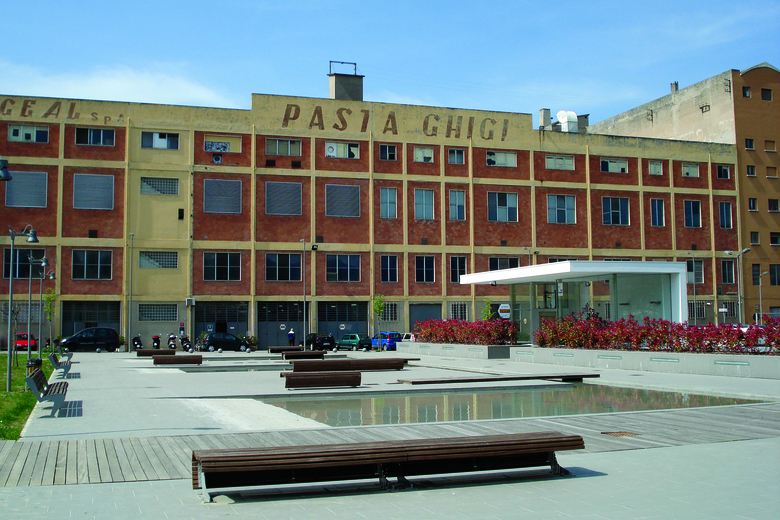 All’interno di questo programma, un’ampia area libera antistante la fabbrica è stata destinata a parcheggio interrato e alla realizzazione di una piazza/giardino, attraversata da un asse pedonale pianificato per collegare l’ambito del fiume Marecchia ed il centro storico con l’emergenza naturalistica della prima collina.