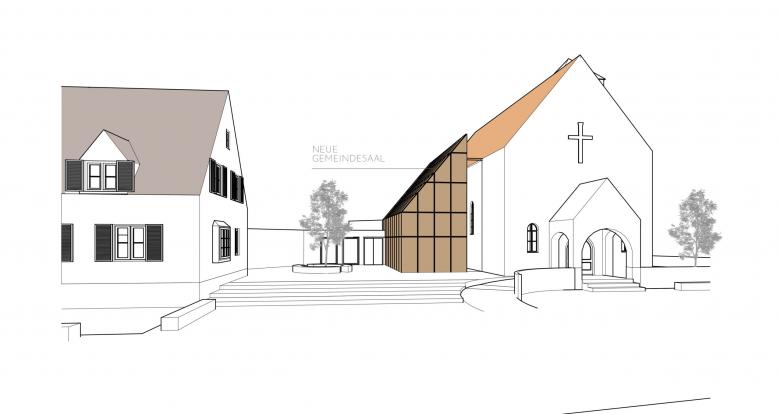 Das evangelische Kirchenzentrum in Schrobenhausen wird um einen neuen Pfarrsaal ergänzt. Das alte Pfarrhaus wird saniert und für die Gemeinde wieder genutzt.