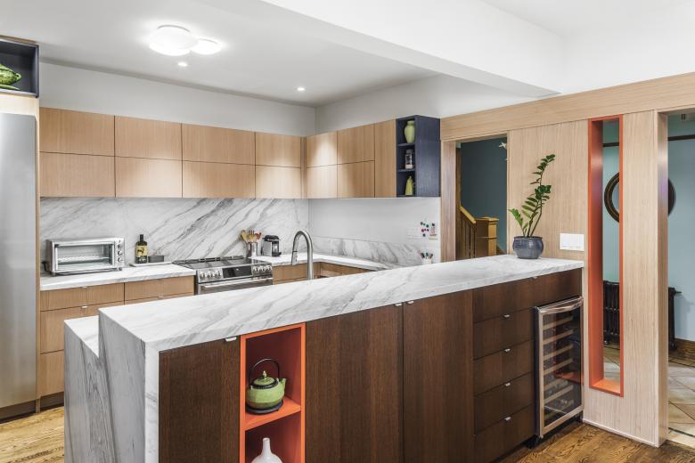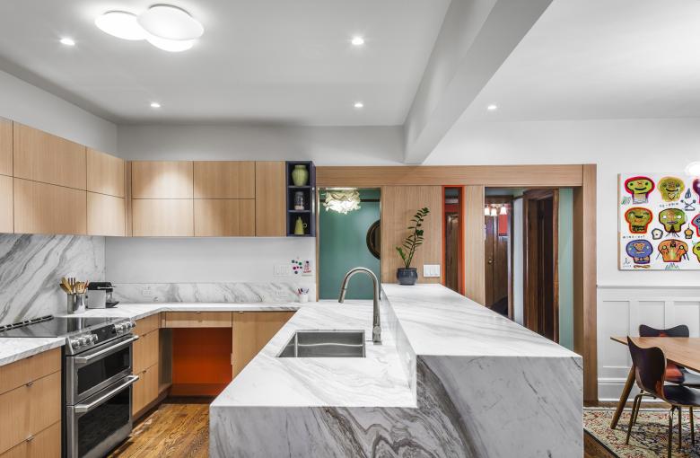 Nine years later, PLANT was hired to renovate the kitchen to finally connect to the rear addition work, and with new openings into the hall to bring the view and light deeper into the house.