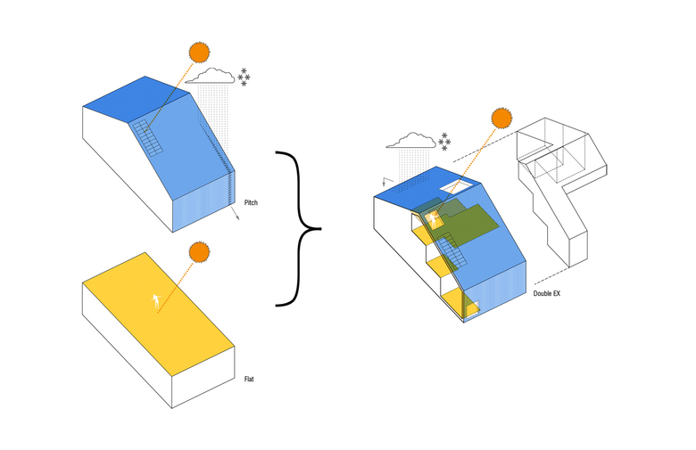 In its iconic simplicity and novel connections between inside and outside, Double-Ex House is at once reassuringly familiar and exciting, general yet one of a kind. Through its various features and options, Double-Ex House is also conceived as a sustainable house that can be easily adapted to a variety of climates and locations.