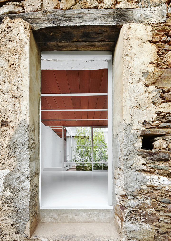 This is a village house between party walls with a long and narrow plan shape, open at the back to a yard. In time, the abandonment led to a dilapidated house. We emptied all the interior and arranged a new house around a central courtyard.