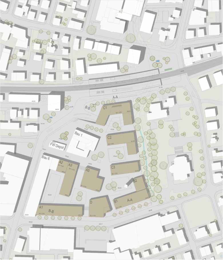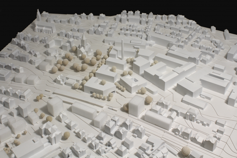 Die Bebauungsmöglichkeiten wurden im Rahmen verschiedener Teilstudien im Modell und in Planform untersucht. In einem weiteren Schritt erfolgte eine städtebauliche Feinabstimmung über den gesamten Perimeter.
