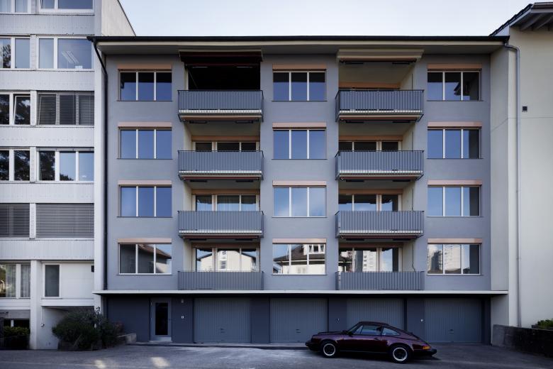 Ein sanierungsbedürftiger Fallstrang legte einen umfassenden Eingriff an Bädern und Küchen nahe. Die Eingriffstiefe wurde auf den Lebenszyklus der Baute abgestimmt. Die Haupträume zeigen sich für heutige Bedürfnisse eher schmal, die Tragstruktur ist schwach bemessen, der Bodenaufbau für heutige Schallanforderungen suboptimal. Die rückspringenden Balkone blieben energetisch problematisch. Für den Bau wurde deshalb eine Restnutzungsdauer von 20 bis 30 Jahren festgelegt.
