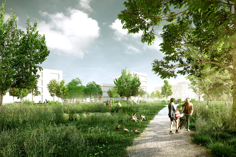 Der Aussenraum wirkt in der Siedlung und über sie hinaus integrierend: Er bindet das zukünftige Wohngebiet Riverside zu einem stimmigen Quartier aus individuell gestalteten Teilgebieten zusammen. Als übergreifender, Begegnungs- und Naherholungsraum macht er das neue Quartier aber auch zu einem Teil des örtlichen Lebens.