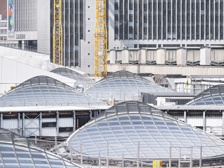 Assembly of the steel construction segments on the Stuttgart 21 construction site.