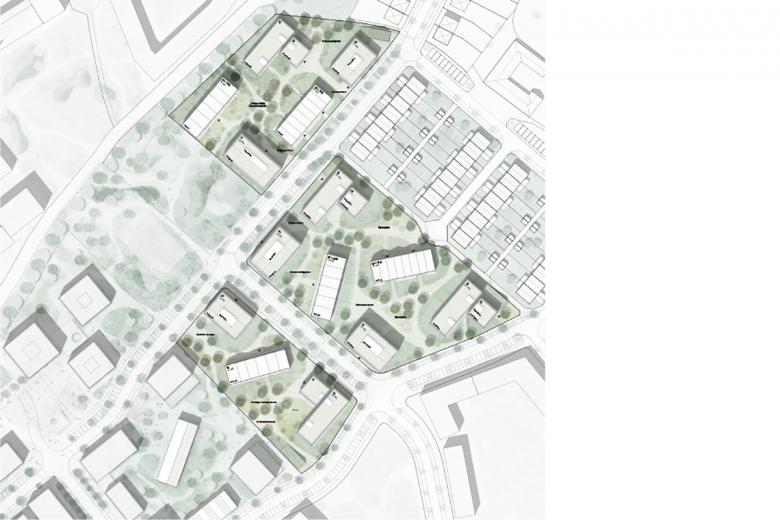 Der Lösungsvorschlag besticht durch seinen überzeugend gestalteten und gut strukturierten Freiraum, in dem die Wohnbauten eingestreut sind und die Intention städtisches Zusammenleben mit den Vorzügen des Wohnens im Grünen miteinander zu verbinden, welche glaubhaft dargestellt ist. [...] Vier sich wiederholende Gebäudetypen werden so ins Areal gesetzt, dass hohe Wohnqualität erwartet werden kann. Durch das aufeinander abgestimmte Gestaltungskonzept von Stadtvilla, Eckhaus, Hofhaus und Gartenvilla wird Zusammengehörigkeit und somit Adressbildung geschaffen, ohne dabei Monotonie zu erzeugen.