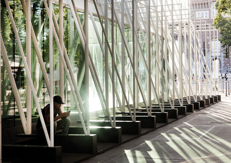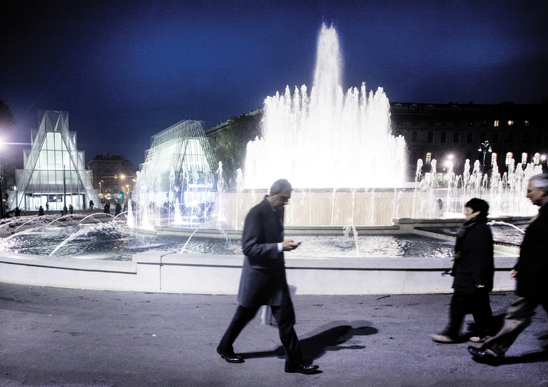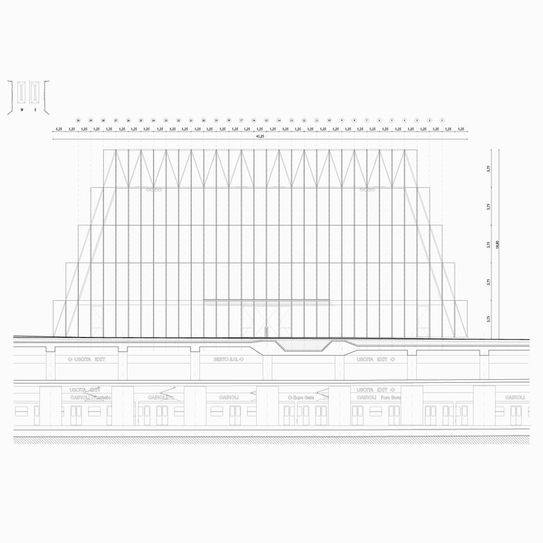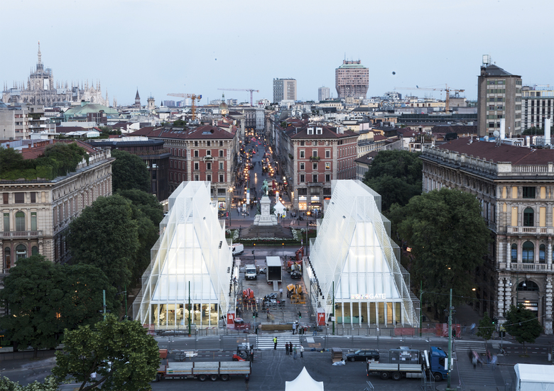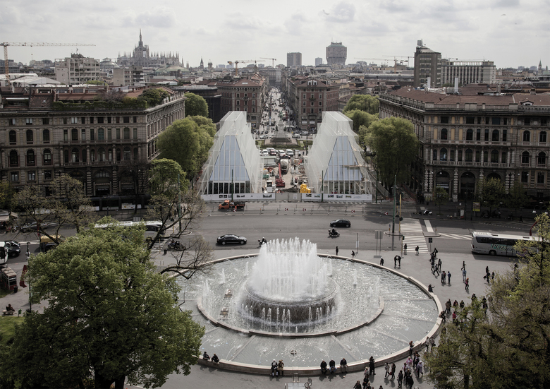 Oltre a costruire un rapporto complementare con il contesto, intende esaltarne le caratteristiche monumentali, costruendo una dimensione urbana precisa: una porta di accesso a Expo che è luogo fisico e di informazione.