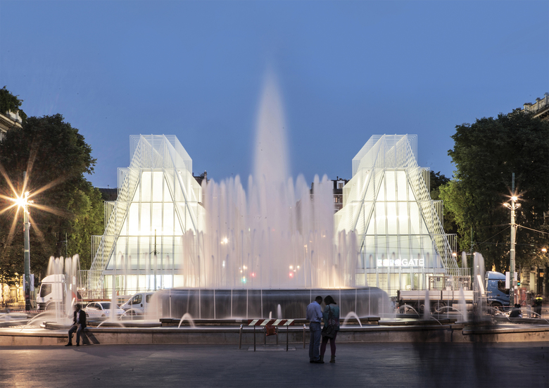 Architettura gotica e zampilli della grande fontana monumentale. L’orizzonte di riferimento è legato alla sostenibilità e alla intelligenza ed economicità costruttiva. Un sistema semplice realizzato con tecnologie elementari e materiali interamente riciclabili, di facile realizzazione, facilmente riconvertibile.