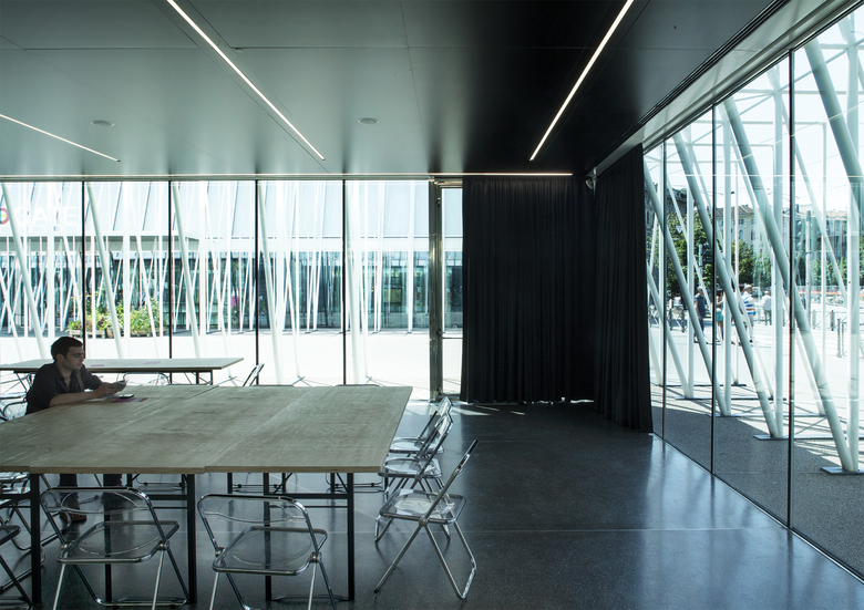 trasparenza, modularità, caratteristiche che perseguono un linguaggio di grandi volumi reticolari e aerei.