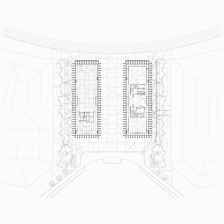 Il progetto propone una piastra aperta, caratterizzata da una piazza centrale e due padiglioni a “casello” laterali: una porta di accesso a Expo.