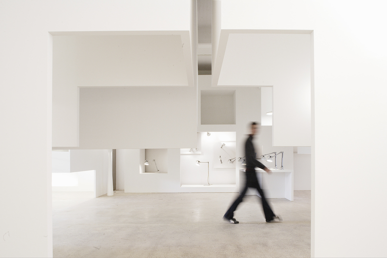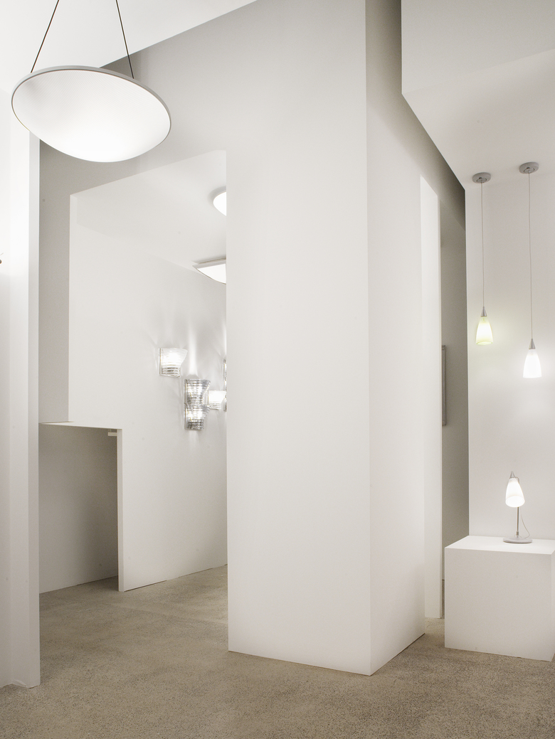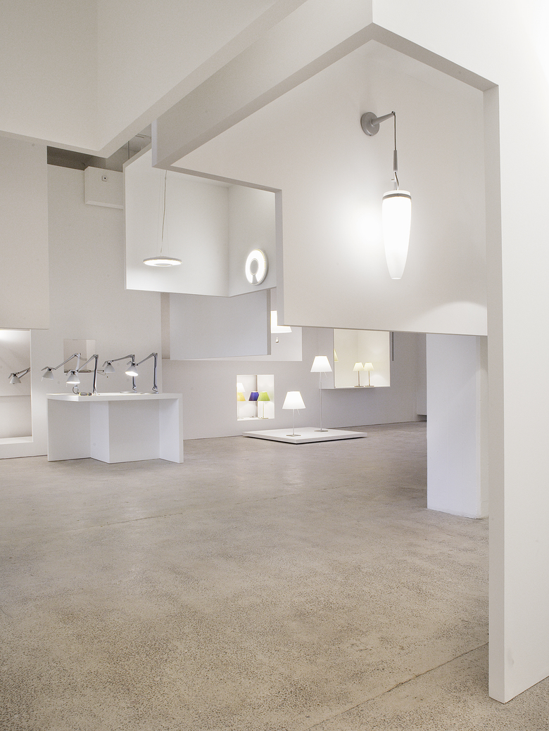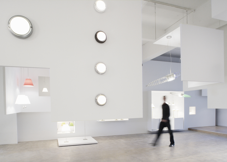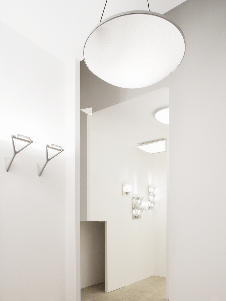 Lo studio per l’immagine coordinata degli spazi di esposizione di Luceplan, ragiona sul tema della luce e della sua percezione.