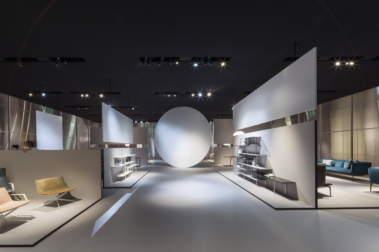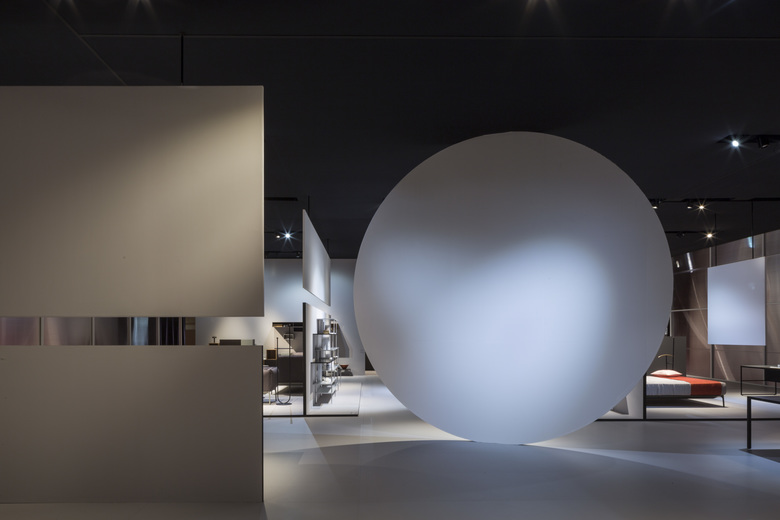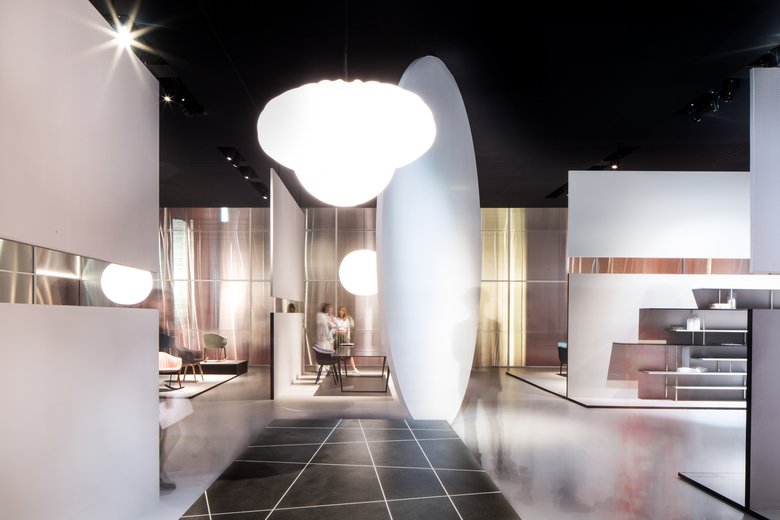 Internamente le scene sono accenni di stanze in continuità l’una con l’altra, una geometria netta e leggibile che lascia spazio agli oggetti MDF Italia. Le linee, le forme e la materia di questi oggetti comprendono un’immagine di leggerezza e semplicità, sostenuta dal rigore e dalla tensione della materia e delle forme nel progetto dello spazio espositivo.