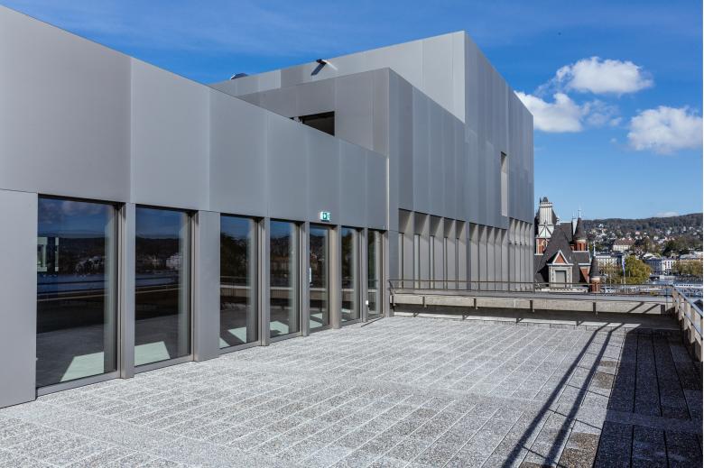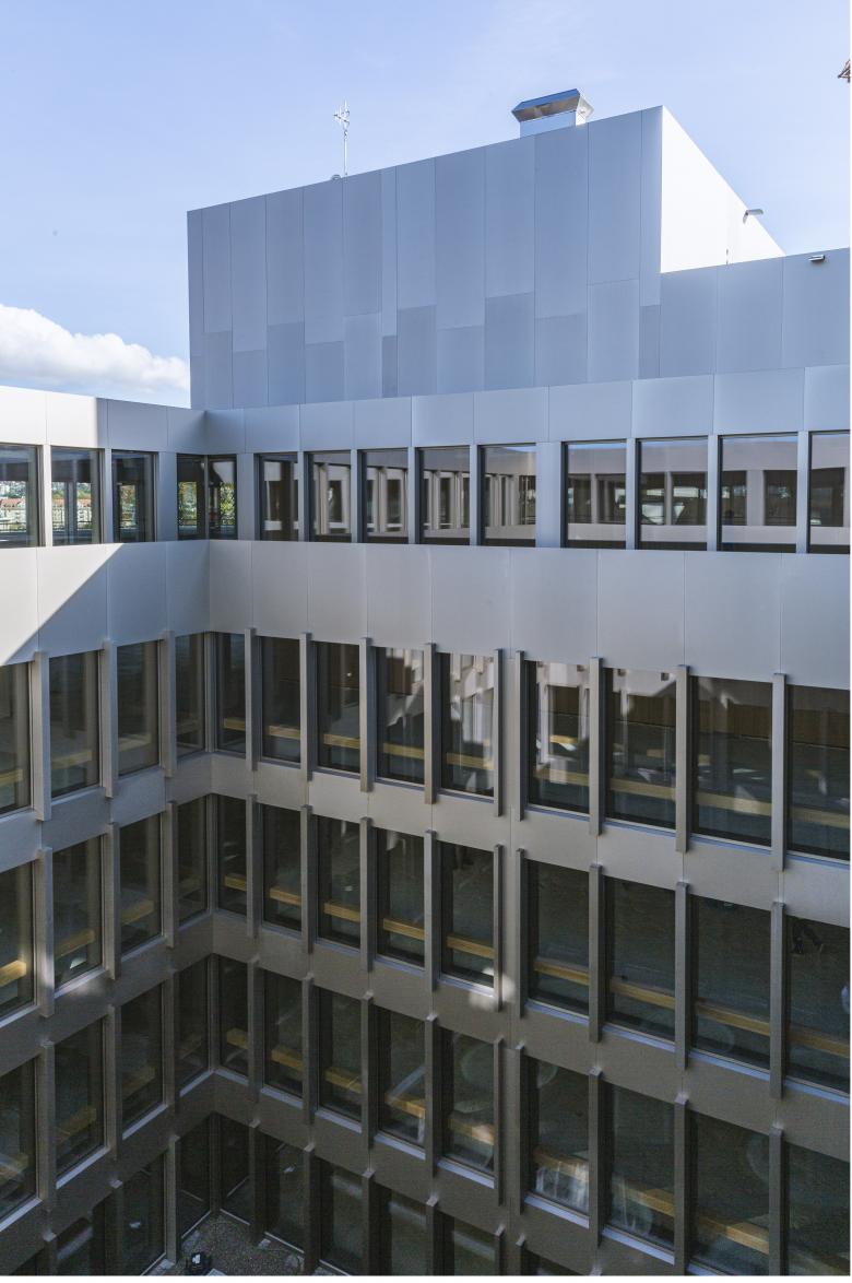 Das Geschäftshaus am General-Guisan-Quai wurde zwischen 1969 und 1973 vom Architekten Jacques Schader geplant und erstellt und befindet sich heute im Inventar der kunst- und kulturhistorischen Schutzobjekte von kommunaler Bedeutung. Ziel der Sanierung ist es, die wertvolle Architektur zu respektieren, zu bewahren und weiterzuentwickeln. Die Eingangshalle soll auch künftig das Zentrum des stolzen Geschäftshauses bilden. Als augenfälligste bauliche Massnahme ist die Rekonstruktion des mehrgeschossigen Atriums im Zentrum des offenen Erdgeschossgrundrisses hervorzuheben. Es erfolgt ein Rückbau des Gebäudes, bis auf die Primärkonstruktion. Denkmalgeschützte Elemente wie die Treppenhäuser, Bodenplatten in Foyer und Vorplatz sowie die Pflanzentröge werden sanft saniert. Eine Besonderheit des Gebäudes ist die im Schutzumfang enthaltene Rasterfassade aus Glas und eloxiertem Leichtmetall. Im Zuge der Sanierung wird in enger Zusammenarbeit mit der Denkmalpflege die Aussenverkleidung demontiert, von Spezialisten in den Werkstätten repariert, saniert und schliesslich wieder eingebaut. Das Gebäude soll die Zertifizierungen der Labels LEED Gold (LEEDv4 Core & Shell) und Minergie (Standard) erhalten.