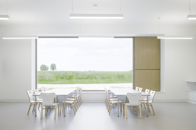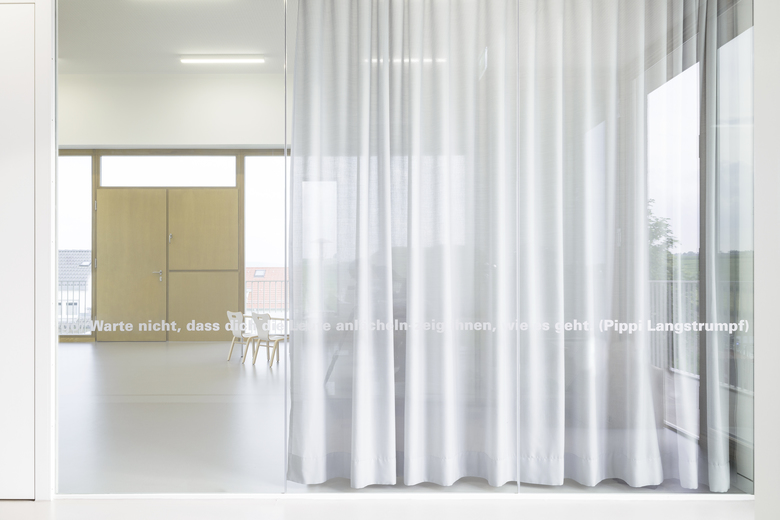 Kinder und Erzieherinnen sollen so die Möglichkeit zur „individuellen Inbesitznahme“ erhalten. Die Idee ist schön, denn während ihrer Zeit in der Einrichtung lernen die Kleinkinder, Fantasie und Realität zu unterscheiden. Der weiße Raum bietet dafür einen guten Hintergrund. Die eingebauten Bilderschienen in den Wänden sind allerdings keine Einrichtung, die von Kleinkindern eigenständig bedient werden könnte. Insofern darf man auf die Ergebnisse dieses Aneignungsprozesses gespannt sein.