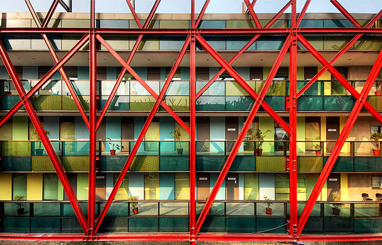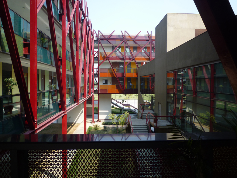 As a Greenfield project with no built context, the design started on a very rigorous geometrical framework of traces regulateurs of squares and golden rectangles, dear to European architecture as well as Indian architecture.