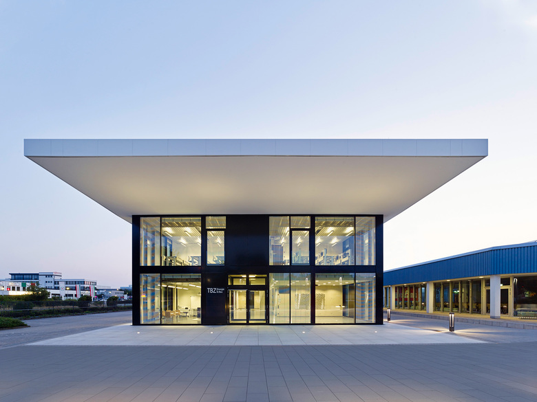 Das Handwerk steht in der deutschen Gesellschaft für höchste Präzision und Qualität. Viele Bereiche der Handwerkswirtschaft stehen zunehmend in unmittelbarer Konkurrenz zur industriellen Fertigung und Absatzmärkte verändern sich stetig. Doch die Handwerkskammern reagieren und versuchen durch innovative Angebote die Begeisterung für das Handwerk aufrecht zu erhalten. So auch die Handwerkskammer zu Köln, welche über eine Imagekampagne mit dem Slogan „Das Handwerk - die Wirtschaftsmacht von nebenan“ auf sich aufmerksam macht. Dass das Handwerk keineswegs den Anschluss durch industrielle Fertigungstechniken verloren hat, und auch in Zukunft als Wirtschaftsmacht wahrgenommen werden möchte, beweist das neue Technologie – und Bildungszentrums für Energieeffizienz und Barrierefreiheit (TBZ) der Handwerkskammer zu Köln, auf eindrucksvolle Art und Weise. Der hoch technisierte Neubau bildet einen neuen selbstbewussten städtebaulichen Auftakt für das Bildungszentrum der Handwerkskammer zu Köln. Durch die Position des Neubaus wird die Haupterschließung des Bildungszentrums aufgewertet und ein schallgeschützter Außenbereich vor der Mensa, als ein introvertierter Übungsplatz, neu geschaffen. Der Leitgedanke des Gebäudeentwurfs ist, vor dem Hintergrund des Wissensaustauschs, die Kommunikation innerhalb des Gebäudes und auch zwischen Gebäude und Außenraum zu fördern. Dies gelingt zum einen durch die Anordnung eines kommunikativen Forums, als räumlich verbindendes Element zwischen Erdgeschoss und Obergeschoss, und zum anderen durch die hoch transparente Fassade. Die Fassade des TBZ verbindet die Aspekte des kommunikativen Forums mit dem hohen technischen Standard des Neubaus auf innovative Art und Weise. Raumhohe Glasflächen im Überformat schaffen eine maximale Transparenz und fördern, durch eine bewusst erhöhte visuelle Kommunikation zwischen innen und außen, den interdisziplinären Wissensaustausch. Lichtlenkende „Köster RETROLux Lamellen“ (Computergesteuert) im Scheibenzwischenraum (3-Fach Verglasung) stellen gleichzeitig den sommerlichen Sonnenschutz und Blendschutz sicher, ohne dabei die Durchsicht (innen/außen) zu beeinträchtigen. Den geforderten Wärmedämmstandard der EnEV 2009 überschreitet das Gebäude, dank Vakuumdämmung (u.a.), mühelos um bis zu 55%. Ein intelligenter horizontaler Dachausstieg, ähnlich einem Panorama Dach im PKW, ermöglicht einen ungewohnt qualitätsvollen Zutritt auf das Gebäudedach. Hier werden in Zukunft die Schüler der Handwerkskammer den Umgang mit innovativen solartechnischen Anlagen am gebauten Beispiel erlernen.
