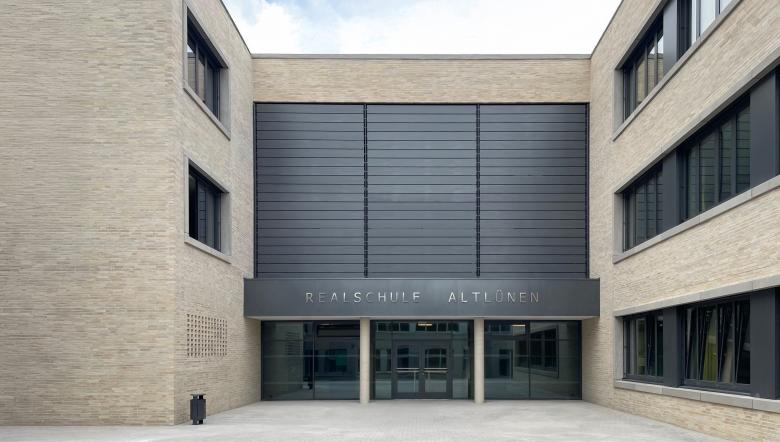 Die Vorhangfassade aus hellem Verblendmauerwerk, Bepflanzung vor der Südfassade sowie die vollflächige Dachbegrünung, verringern ein starkes Aufheizen in den Sommermonaten. Die Aktivierung der Speichermasse von Massivbauteilen, die Vermeidung von Verbundbaustoffen, der erhöhte Wärmeschutz im KFW40 Standard, die Lüftungsanlage mit Wärmerückgewinnung sowie die Photovoltaikanlage sollen neue Standards für den modernen und nachhaltigen Schulbau setzen. Diese ökologischen Aspekte sind Inhalte aus dem hauseigene Label GreytoGreen, werden im Entwurf der neuen Realschule Altlünen angewendet und sinnvoll miteinander kombiniert.
