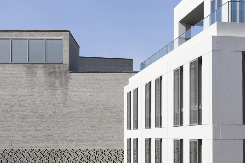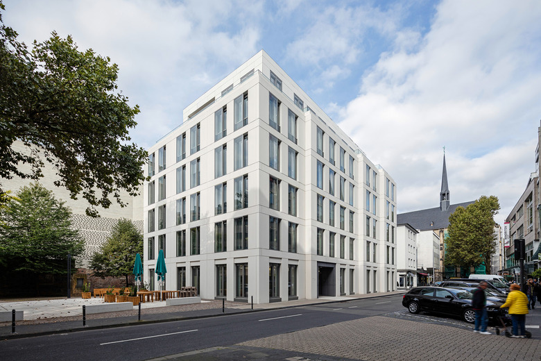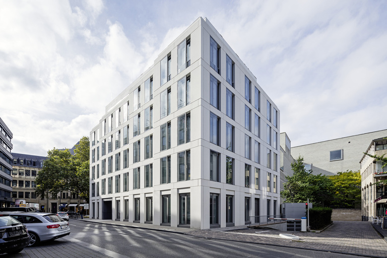 Auf Grundlage einer durch SSP erstellten Machbarkeitsstudie wurde SSP damit beauftragt die Machbarkeitsvariante „Kernsanierung“ des WDR Stammhauses in Köln auszuführen. Das freistehende Gebäude befindet sich in exponierter Innenstadtlage und mit dem Kunstmuseum Kolumba (Architekt Peter Zumthor) im Umfeld einer hochwertigen Architektonischen Nachbarschaft. Das Entwurfskonzept beinhaltet, neben der Wiederherstellung eines repräsentativen Erscheinungsbildes, eine Funktionsoptimierung der Nutzflächen und der Betriebsabläufe und implementiert eine zukunftsorientierte Büroorganisation. Maximale Nutzungsflexibilität sowie eine optimierte Energieeffizienz runden das nachhaltige Gebäudekonzept ab. Die neue Architekturbetonfassade des WDR Stammhauses wird in großformatigen, feinstrukturierten, Betonfertigteilen ausgeführt. Mit Auswahl des Fassadenmaterials Beton gelingt es die Aspekte eines puristisch repräsentativen Erscheinungsbildes mit den Vorteilen einer großformatigen Fassadenaufteilung zu verbinden und dennoch eine massiv anmutende Fassade zu realisieren. Durch die Realisierung einer besonders hochwertigen Betongüte und nachträglich geschliffenen Betonoberflächen erfüllt die Betonstruktur höchste gestalterische Ansprüche. Darüber hinaus konnte durch die Vorteile der Vorfertigung auch die Bauzeit maßgeblich verkürzt werden. Großformatig raumhohe Fenster sorgen für eine hohe Transparenz und erzeugen ein helles Erscheinungsbild in den Innenräumen. Für die mehrschichtige Konstruktion der Fenster war eine Sonderkonstruktion notwendig. Ähnlich wie bei einem Kastenfenster befindet sich vor den regulären Öffnungsflügeln (zweiflügelig), eine zweite Fensterebene. Auch die zweite Fensterebene ist im Hinblick auf Wartungszwecke nach innen hin öffenbar. Die notwendige Absturzsicherung stellt eine Prallscheibe (Abdeckung 2/3 der Fensterfläche), als eine weitere außenliegende Glasebene sicher. Dank leistungsfähiger Dämmstoffe überschreitet die Fassade die Anforderungen der EnEV 2009 maßgeblich.