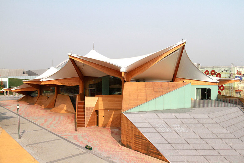 Die Tragkonstruktion des Pavillons besteht aus 15 Baumelementen. Diese Brettschichtholzkonstruktionen sind mit einer Membran aus PTFE überspannt. Die Membran überdacht eine Fläche von 2.500 m². Die maximale Spannweite beträgt 11 Meter.