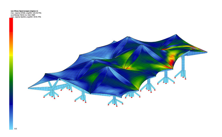 Tragwerksplanung, Formfindung, Membran-Installation