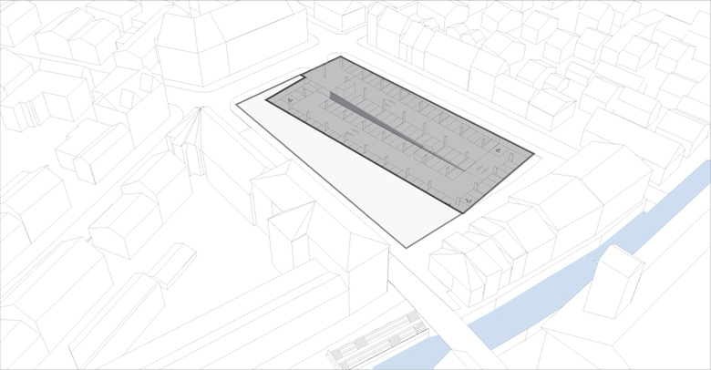 Ein Schwerpunkt der Planung ist Optimierung und Wirtschaftlichkeit. Eine kontinuierliche Rampe erschliesst Parkplätze auf beiden Seiten von Ebene 0 bis Ebene – 5,7m. Diese wirtschaftliche Form der Parkplatzerschliessung bietet auch im Hinblick auf die Anzahl der in Zukunft benötigten Stellplätze eine größere Flexibilität gegenüber einer „Standard-Tiefgarage“.