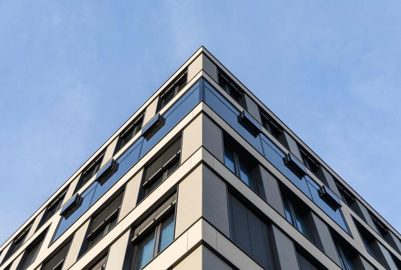 Die Fassaden sind in einem gleichmäßigen Raster aus nachhaltigen und witterungsbeständigen Glasfaserbetonplatten aufgebaut. Die nachhaltigen Fassadenelemente wiegen nur 30 kg/m² und sind recyclebar. Darüber hinaus nimmt die Fassade aufgrund der dünn zermahlenen Zementoberschicht CO2 aus der Luft auf und wirkt dadurch entkarbonisierend.