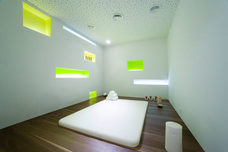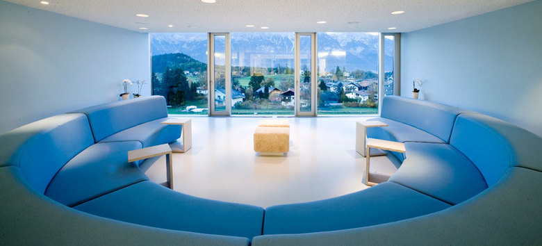 Frisch, hell, einladend - so präsentiert sich der neue Wellness-Bereich des Lanserhofs, unweit von Innsbruck in den Tiroler Bergen gelegen. Die boxenartig losgelösten Behandlungsbereiche laden in einer sinnlichen, introvertierten Atmosphäre zum Entspannen ein. Das veränderbare Licht wird in der schlichten doch eleganten Umgebung zu einem szenischen Element - spannend im öffentlichen Bereich, einfühlsam in der Privatheit der Behandlungsräume.