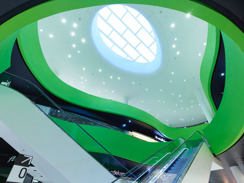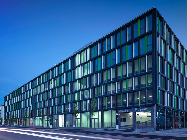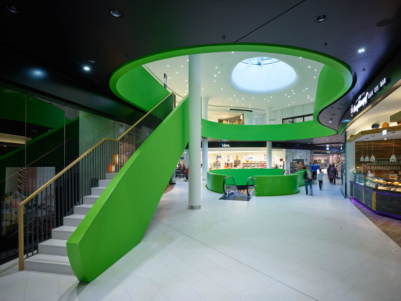 Mit direktem U-Bahnanschluss entstehen hier Einzelhandels-flächen sowie Verkaufsflächen für den täglichen Bedarf, aber auch Büroflächen in den oberen Geschossen, die durch eingeschnittene Innenhöfe lärmgeschützt natürlich belichtet und belüftet werden können. Drei oberirdische Parkdecks mit 189 Stellplätzen sind in das Gebäude integriert. Im Gegensatz zu den eher introvertierten Verkaufsflächen des OEZ entsteht hier ein lebendiges Gebäude, das den Kontakt mit der umgebenden Bebauung sucht und als „neue Adresse“ den Stadtraum gestaltet.