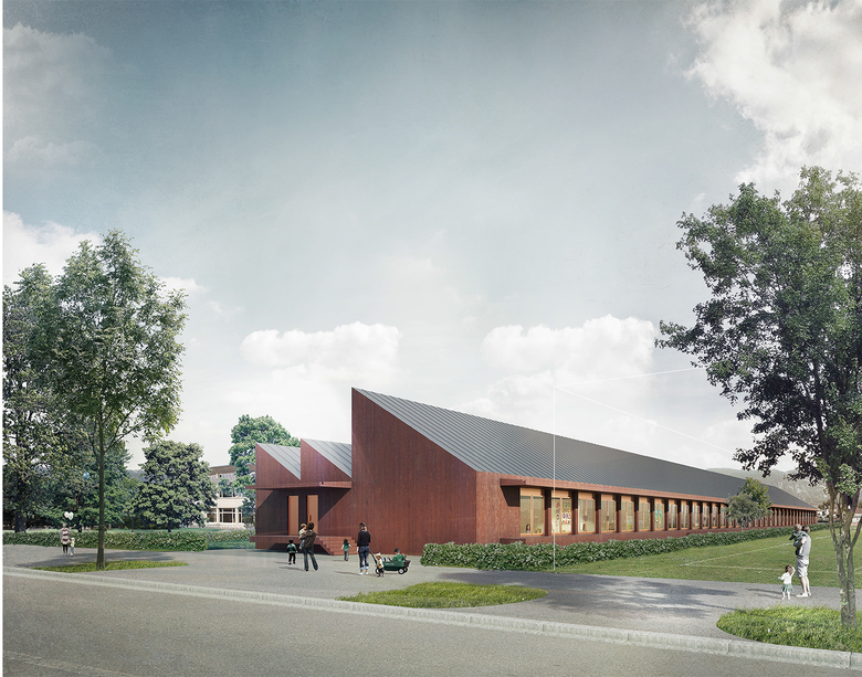 2017 / offener Wettbewerb / Doppelkindergarten und Tagesschule Solothurn / urbaNplus / Stefan Kurath / GmbH mit Urbscheit Landschaftsarchitektur und ACS Partner