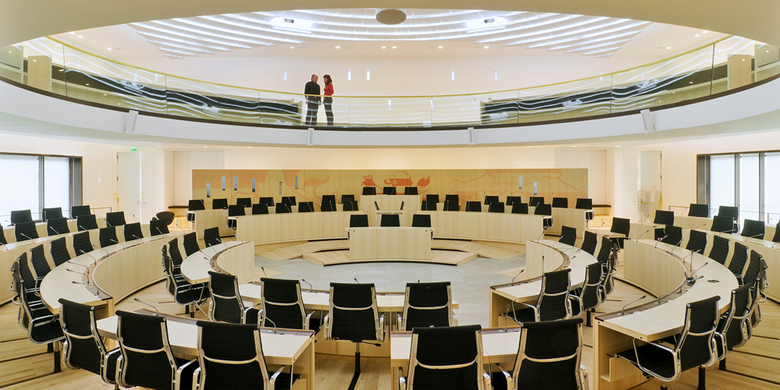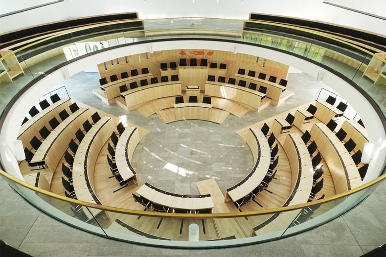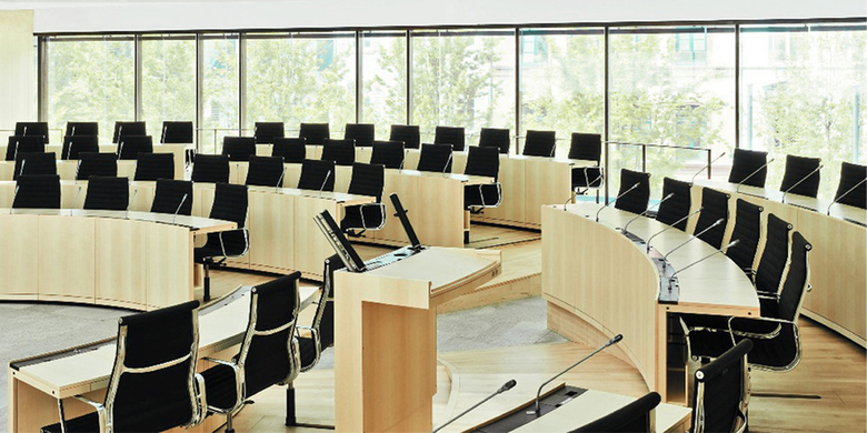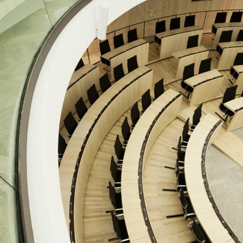 ’Der Neubau des Plenarsaalgebäudes des Hessischen Landtages besticht durch die Einfachheit seiner Großform. Es gelingt ihm, seine Umgebung neu zu ordnen und wie nebenbei mit seinen Kanten klare Stadträume zu definieren. Auf den städtebaulichen, in seiner Maßstäblichkeit überaus heterogenen Kontext mit einer sehr plastischen Gestaltung des Baukörpers zu reagieren, erweist sich als äußerst wirkungsvoll. Der Dialog mit der vorhandenen historischen Bebauung, der aus einem Verständnis einer zeitgemäßen, modernen Architektursprache geführt wird, trägt zum überzeugenden Gesamteindruck bei.’