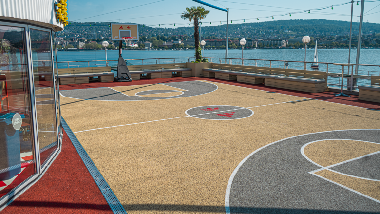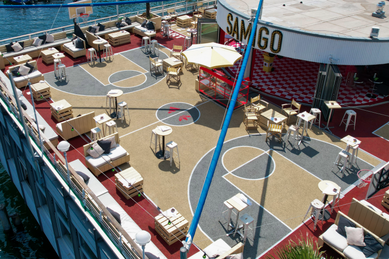 Am Tag werden auf der Terrasse diverse Sportkurse angeboten und abends wird das Sportfeld zur Tanzfläche und Barbetrieb umfunktioniert. Das alles ist mit unserem RUB TAN® Sportbelag möglich. Der Inhaber des SAMIGO hat sich bereits vor zwei Jahren für einen RUB TAN® entschieden, welchen er nun mit modernen Farben aufgefrischt haben wollte. Wir haben den bestehenden