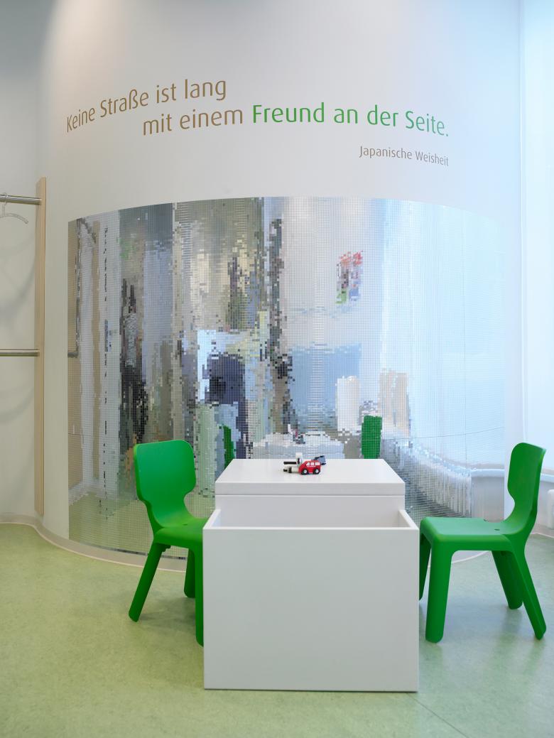 A medical practice for a paediatrician and a TCM doctor represents a balancing act: on the one side children and life in all its intensity and on the other, adults and peace and quiet. The practice is distinguished by its ingenious layout and the use of innovative materials. Clear shapes and colours paired with individual details round off the draft. Fresh colours define the overall impression of the practice. In contrast soft, natural colour tones characterise the TCM area, exuding peace and quiet. The individual graphic design extends through the whole space. In addition, the high hygiene requirements are met to a particular degree without appearing sterile. Both the needs of children and young people and also adults are met in a convincing overall appearance.