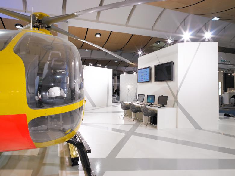 In 2009 real rooms were indicated, in 2010 the networking of the various stops was presented abstractly, with clean white and networked beams of light. In 2011 the stand is optimised in communication terms and characterised by a central lounge.