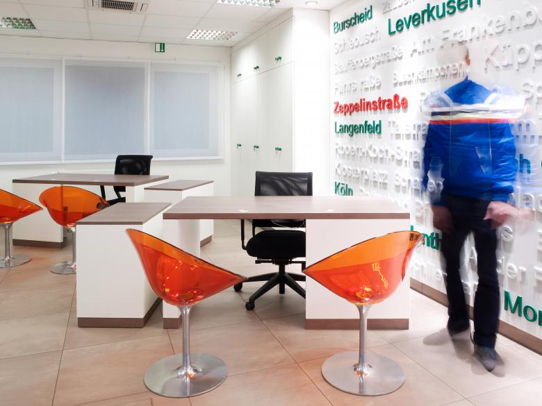 The Leverkusen public bus transport company Kraftverkehr WupperSieg (kws wupsi) got a new customer service centre. Customers are pleasantly received in an inspiring room. The extraordinary interior architecture has given wupsi a new face and also allows the company to be experienced as a brand outside its buses. Clear colours and innovative materials contrast with wood; the wall installation shows wupsi bus stops. The previous stuffy office has made way for a characterful brand experience.