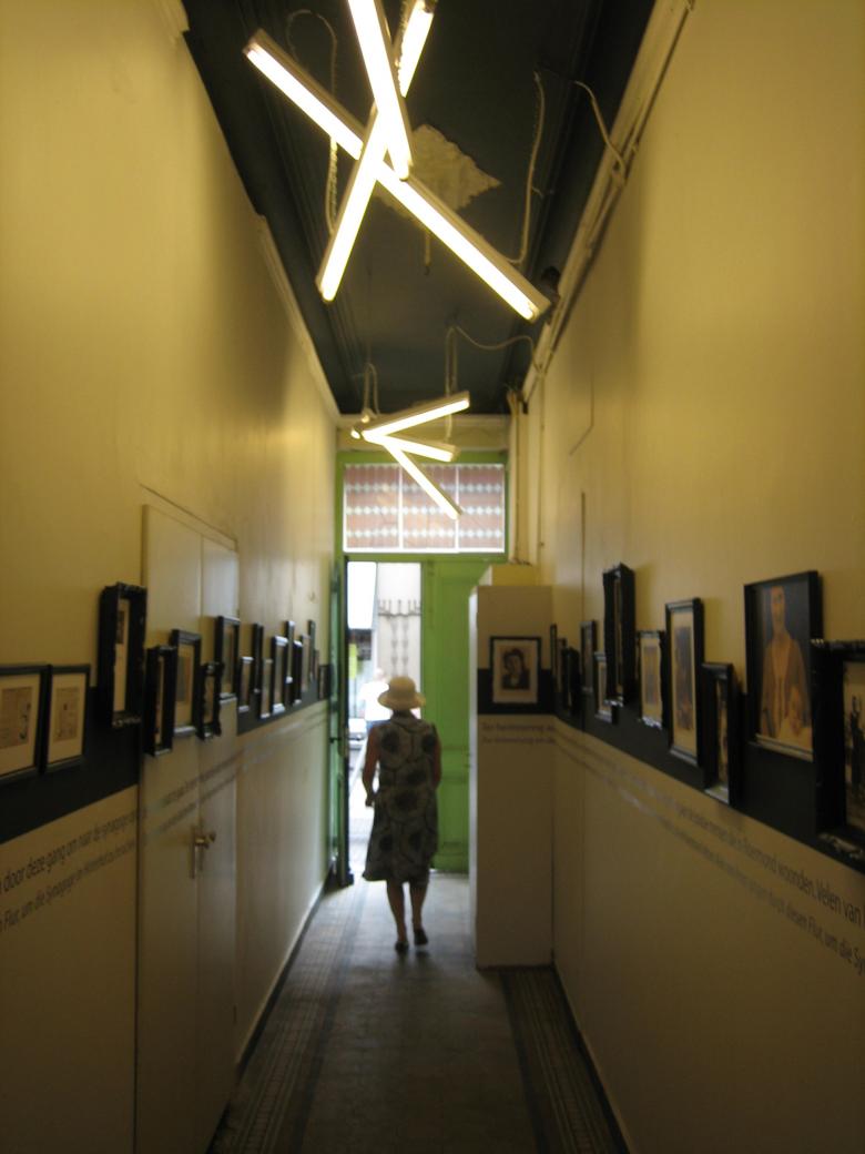 The town’s unused synagogue from the fifties became a museum. In doing so a long connecting hallway came into being: it shows authentic photos in a variety of differently aged frames and shows visitors the common path to the synagogue. The design creates proximity, anonymous people are given a face. Hebraic typography, fifties colours and vivid exhibits are the design elements in the synagogue itself. The hats indicate the number of men required for a service.