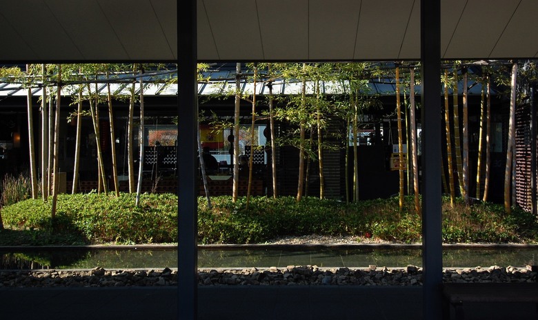 This project consisted of the renewal of a garden inside a commercial facility. Based on a theme of "stage and flow," we added a Noh stage and created a simple but classy Zen garden. Stainless steel and other metallic, modern materials were incorporated with the aim of creating a new generation of Japanese-style garden.