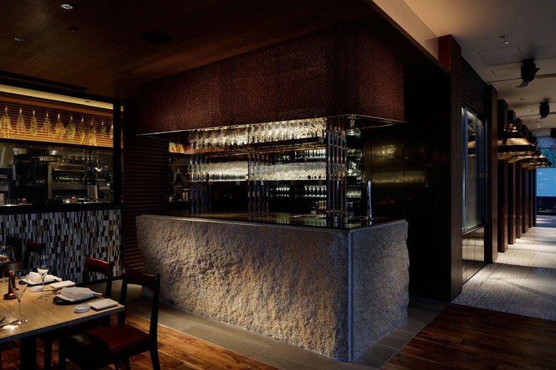 We took charge of the stone-work for an interior space and terrace greenery of a restaurant in the Tokyo Garden Terrace building. The design included an entrance sign and a three-meter counter wall, utilizing a one-ton monolithic piece of ena stone. Within the terrace, we placed architectural agaves to accentuate the exotic experience. We also attached caster wheels to the containers, so that they can be easily moved when the restaurant hosts an event.