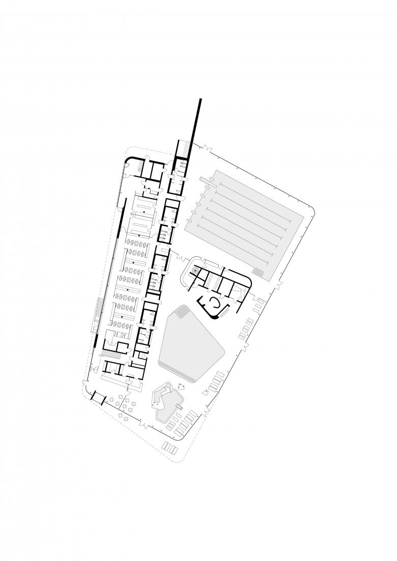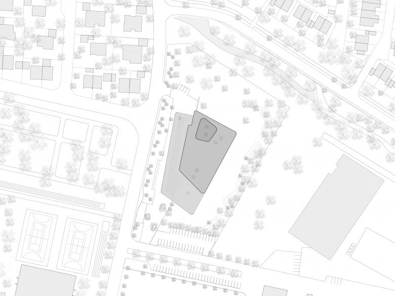 The indoor swimming pool in Neutraubling is characterized by a mix of clear forms and strong contrasts. From the outside, the building has a calm and sleek design and is divided into two flat volumes. These differ on the one hand in their function and on the other in their room height. The low structure accommodates the foyer and changing rooms, while the bathing hall is designed higher to meet the requirements. A spacious forecourt marks the entrance area and guides visitors into the building. Arranged parallel to the street, the changing room block forms a protective backdrop to the cemetery opposite and the residential areas to the west. The foyer and changing room wing are reduced in height and slide into the immediately adjacent, spacious bathing hall. With its sports, leisure and wellness area as well as catering facilities, this opens up extensively to the south and south-east towards the outside space.